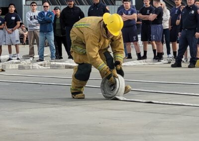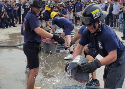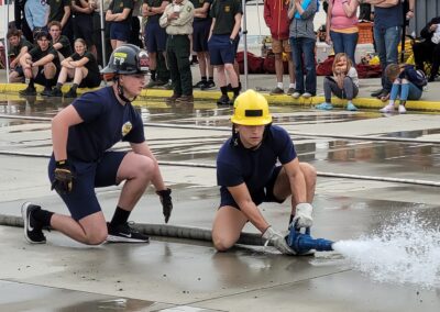 These high schoolers were there to compete in four timed skills competitions as part of CSFA’s first Fire Explorer Muster. The teams competed in Bunker and Hose Roll Relay, Hose Drag Relay, Make and Break, and Bucket Brigade, while parents and other supporters cheered them on.