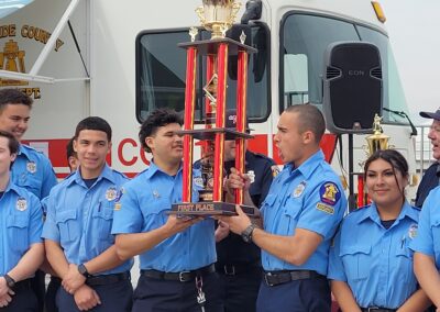 The first-place trophy – and bragging rights — went to Moreno Valley Fire Explorer Post 58 who operate under advisors Lawrence Johnson and Olivia Martinez. Second and third place trophies went to Riverside City FD’s post 101A and 101B, respectively.