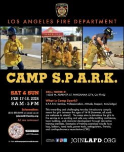 Scan the QR code on the flyer or visit lafd-campspark.eventbrite.com