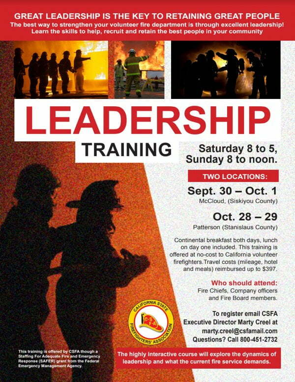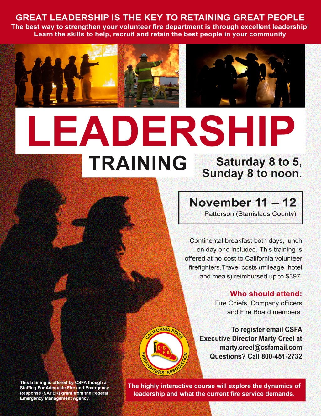 The best way to strengthen your volunteer fire department is through excellent leadership! Learn the skills to help, recruit and retain the best people in your community. The highly interactive course will explore the dynamics of leadership and what the current fire service demands.