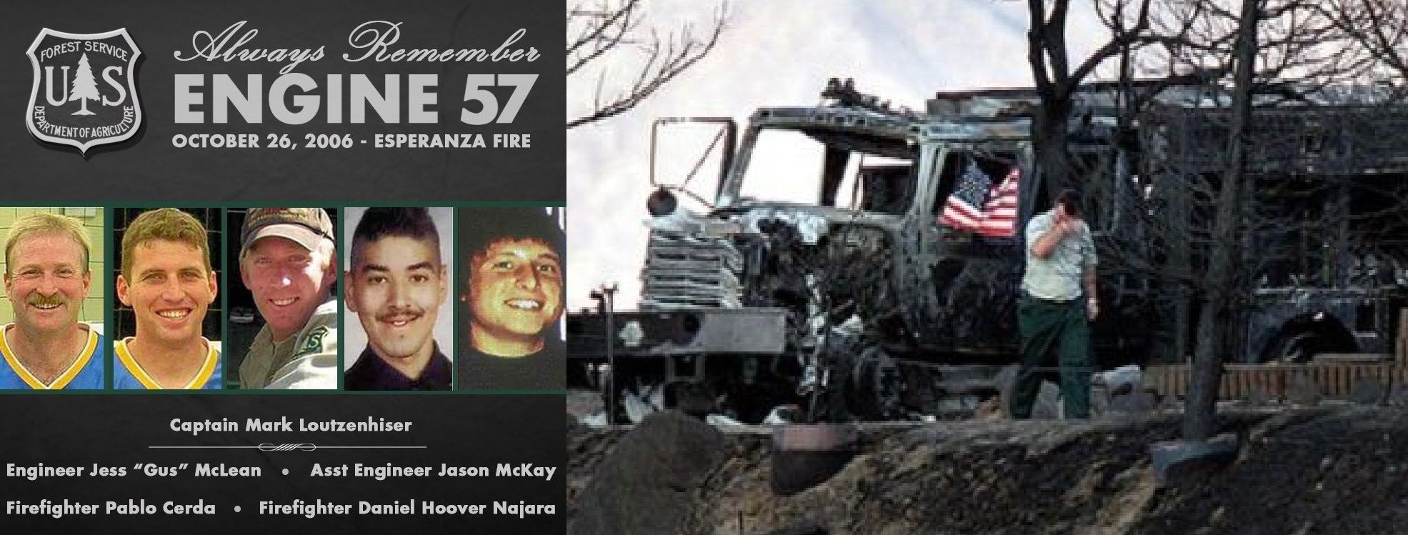 In memory of Captain Mark Loutzenhiser, Fire Engine Operator Jess “Gus” McLean, Assistant Fire Engine Operator Jason McKay, Firefighter Pablo Cerda, and Firefighter Daniel Najera.