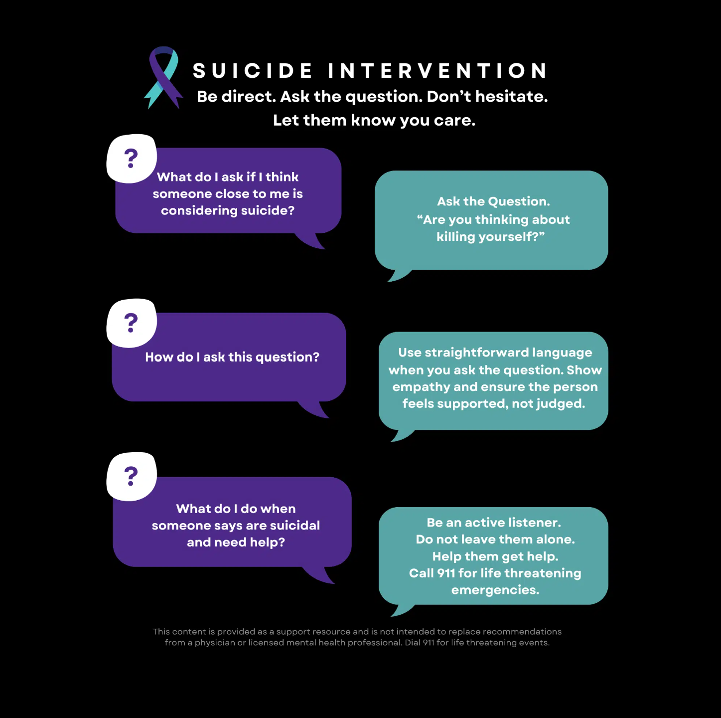 While the threat of suicide is high, so is the room for intervention. So often, simply asking someone who may be struggling can make all the difference in preventing their death.